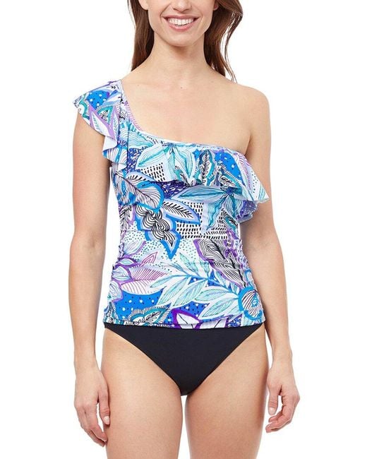 Women's Blue Tropic Boom One Shoulder Ruffle Top