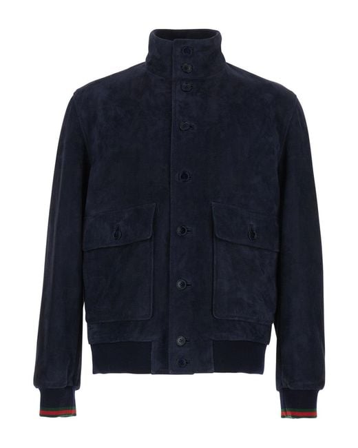 Men's Blue Jacket With High Neck And Web Detail On The Cuffs