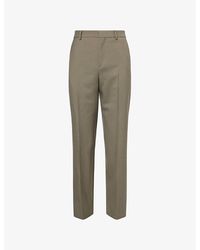 Go to MR PORTERGucci's pants are neatly tailored from wool-gabardine in a refreshing lilac hue. They've been made in Italy and have a curtained waistband, split hems and a tonal embroidered logo at the back. Color: purple
