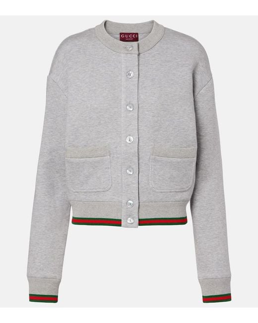 Women's Gray Web Stripe Cotton-Blend Jersey Cardigan