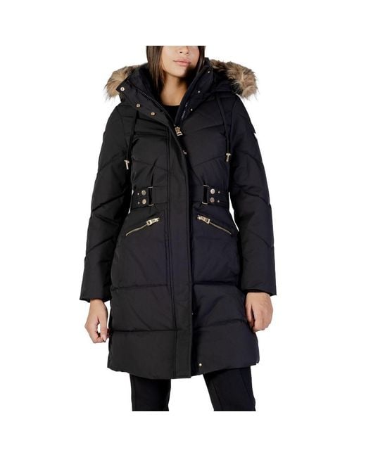 The Guess FATEMA BELTED PUFFER W5BL45 WGJR2 women's coat is the perfect choice for facing the cold season with both style and comfort. Made from 100% polyester, this jacket features warm and lightweight padding, ensuring optimal protection against the cold while maintaining freedom of movement. The adjustable hood with faux fur trim adds a touch of elegance and modernity, while the belted waist enhances the feminine silhouette. Practical zip pockets and metallic details offer both functionality and sophistication. Ideal for both casual and more refined looks, this Guess puffer stands out for its quality materials and attention to detail. Season: FW25. Color: black
