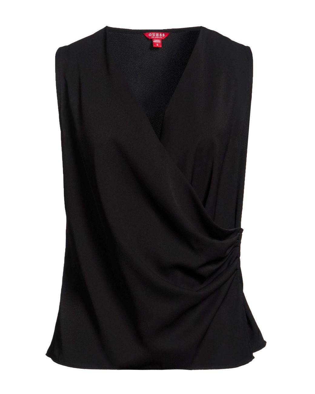 Wrap top, crepe, solid color, brand logo, deep neckline, sleeveless, hook fastenings, hand wash, do not bleach, do not tumble dry , Color: Black , Size: XS