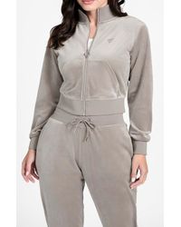 Guess Women's White Zip-Up Striped-Band Sweatshirt