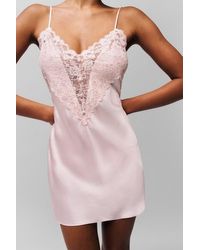 Go to SSENSEViscose satin slip-style maxi dress. · Lace trim and scalloped edge at V-neck and back · Mock button closure at front · Adjustable spaghetti straps Supplier color: Red love