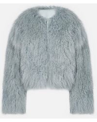 Go to ItalistBomber mongolia. Crew neck. Long sleeves. Color: light blue grayComposition: 100% Leather