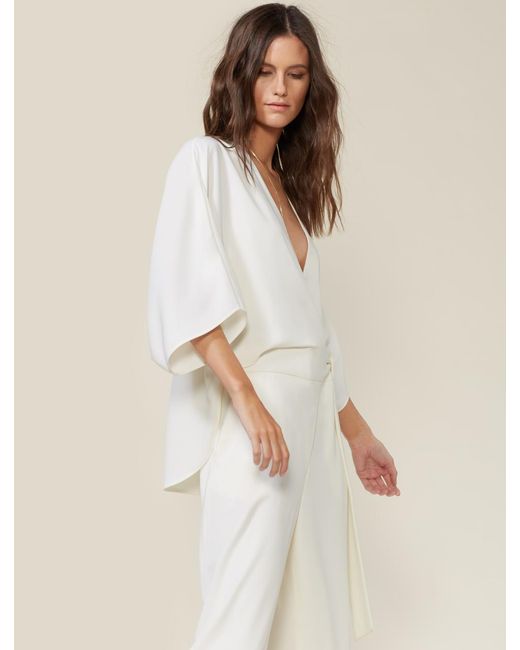 Halston Heritage - WRAP FRONT FLOWY CREPE JUMPSUIT - Size - 0 - chalk. Color: white