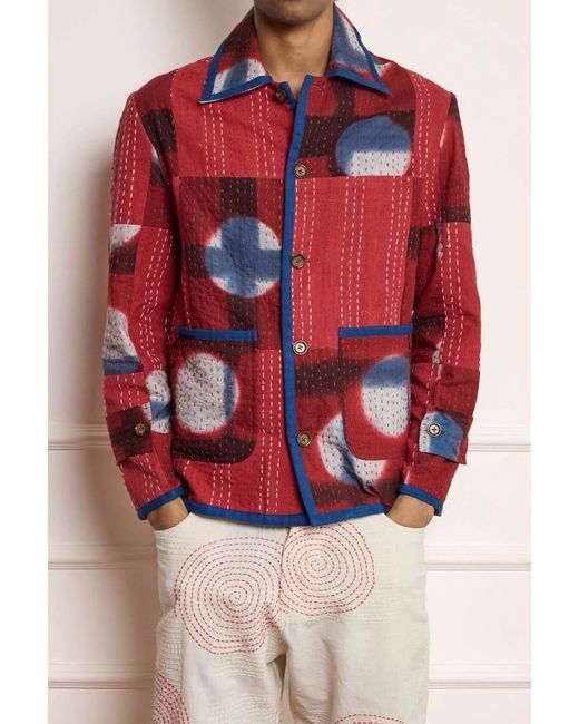 Women's Red Patchwork Kantha Jacket
