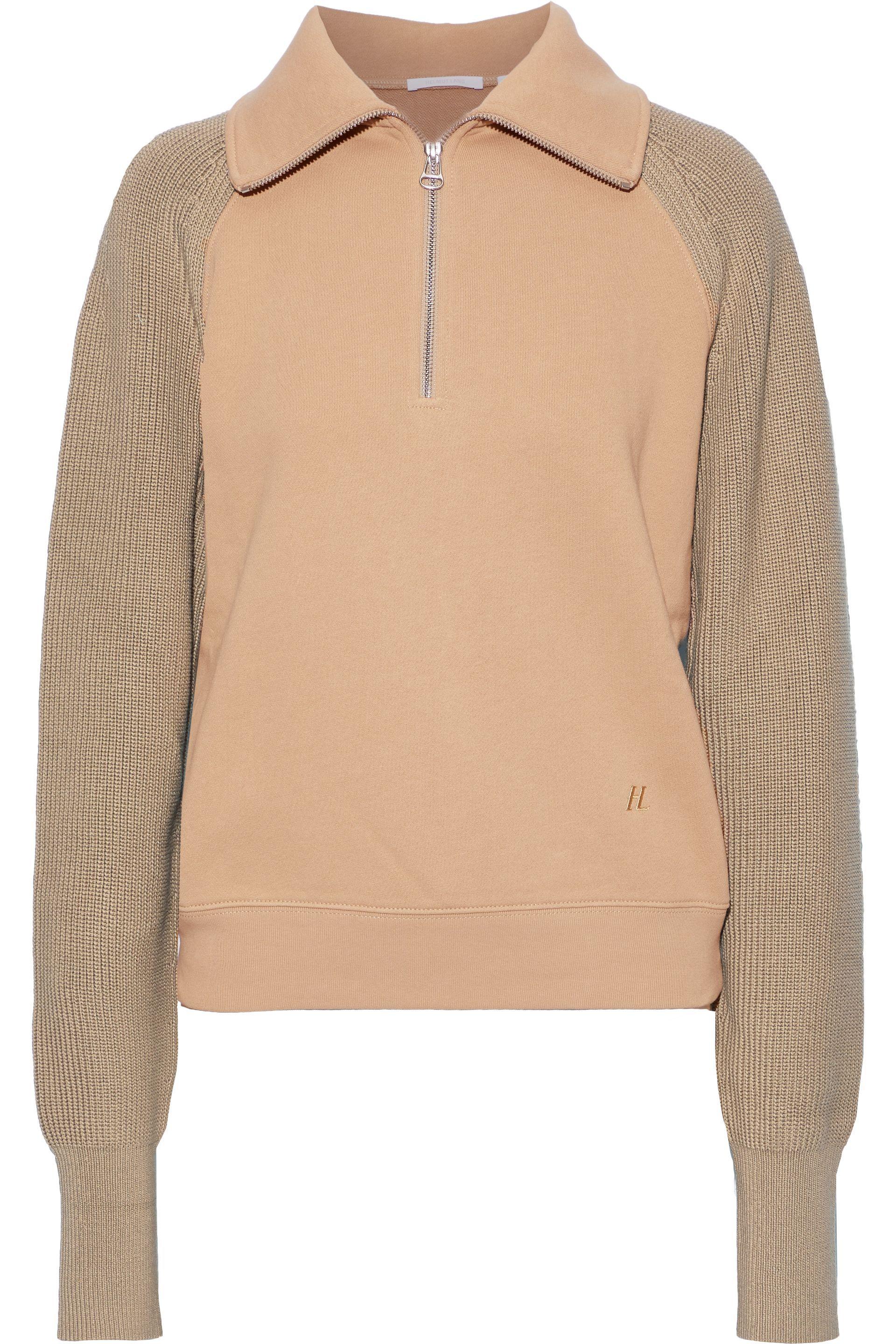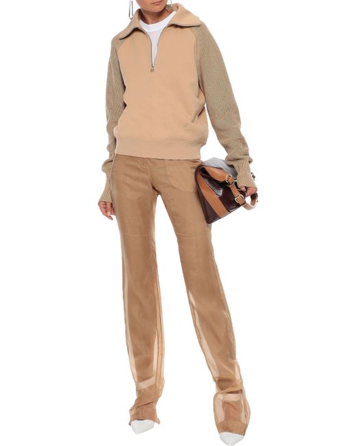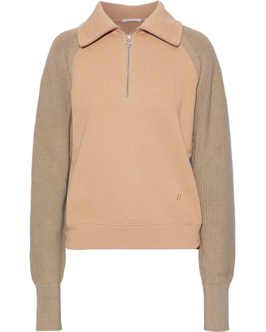 Women's Ribbed Knit-paneled French Cotton-terry Sweatshirt Tan