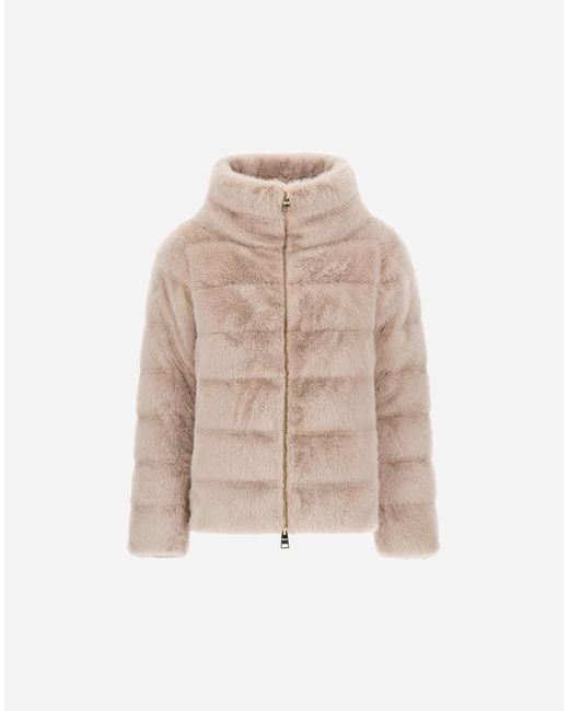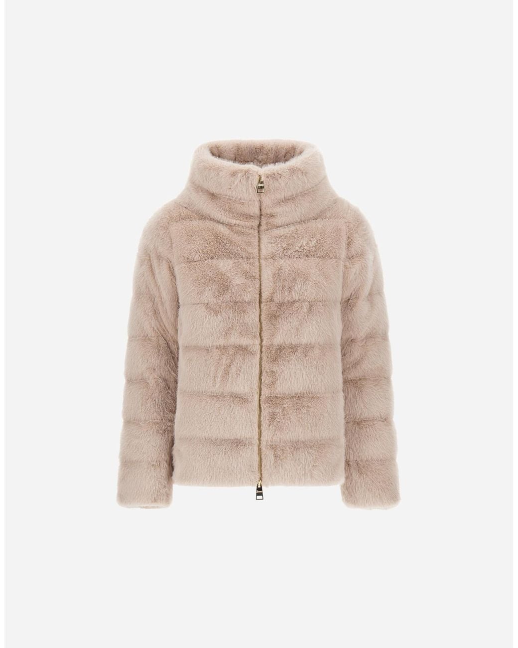 Cape made from beaver-effect faux fur. Soft, enveloping short-pile material. With its clean, accommodating shape, this piece is suitable for countless outfits and will give any look a glamorous edge. Regular fit high collar two-way zip fastening welt pockets goose down padding. 100% pl - main fabric (faux fur): 100% polyester. Lining: 100% polyamide / nylon. Padding (feather): 80% down 20% feather.