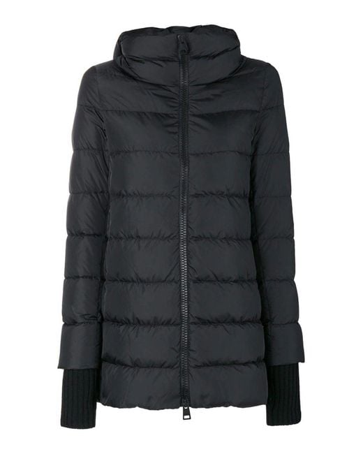 Hooded puff coat zip two pockets along the side knitted wrist exterior
