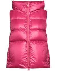 Go to YOOXShell, quilted, plain color, no appliqués, hooded, single-breasted , sleeveless, synthetic filling, zip fastening, multipockets, machine wash or dry clean, do not bleach, do not tumble dry. 100% Polyamide. Color: red