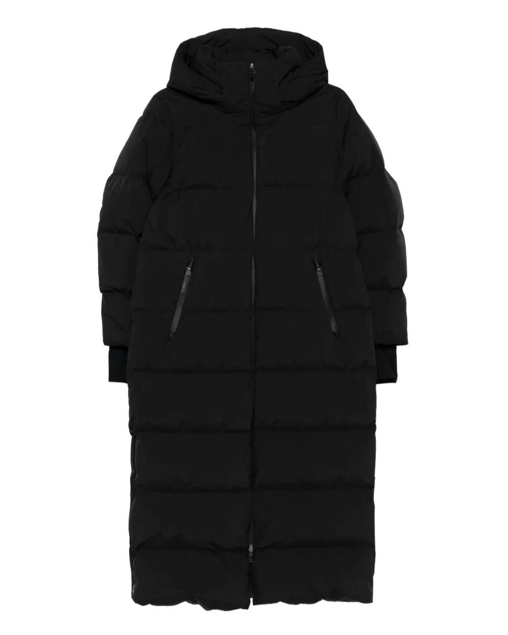 Black quilted design goose down filling long sleeves concealed zip fastening two zip pockets Size: 42. Gender: Female. Material:Polyester/Polyurethane/Goose Feather/Polyamide/Polyamide/Elastane/Goose Down.