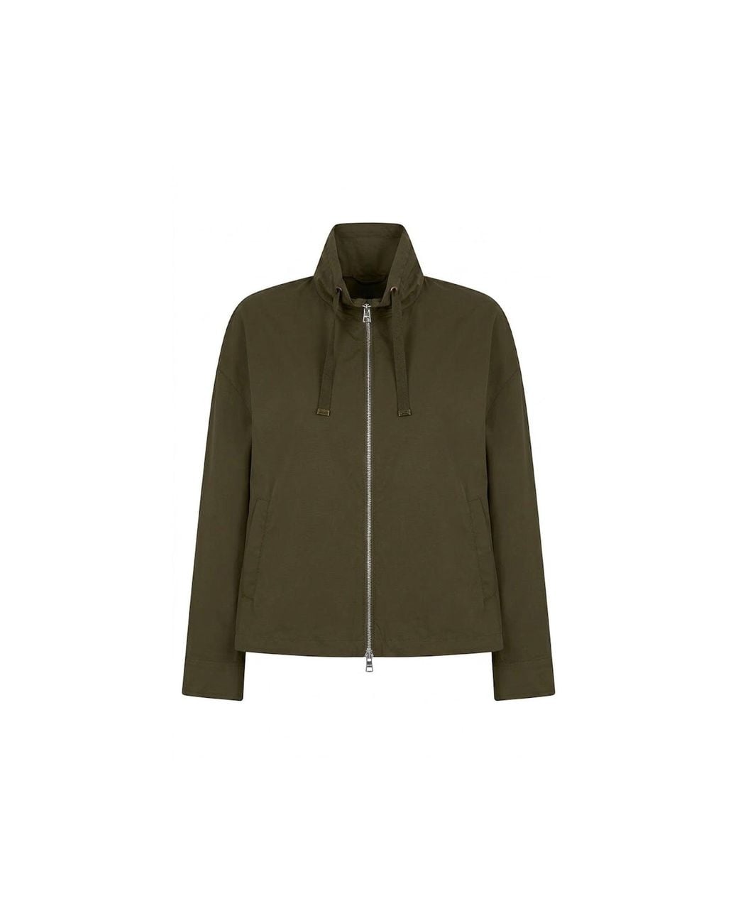 Women's Green Drawstring High-Neck Jacket