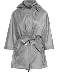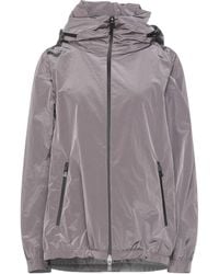 Go to YOOXShell, brand logo, plain color, hooded, single-breasted , long sleeves, zip fastening, multipockets, hand wash, do not bleach, do not tumble dry, windbreaker. 100% Polyamide. Color: gray