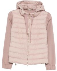 Go to TheBSBlack feather down padded design drawstring hood front two-way zip fastening long sleeves two side zip-fastening pockets rear curved hem full liningGender: WomenMaterial: OUTER COMPOSITION POLYAMIDE: 100.0%, LINING COMPOSITION POLYAMIDE: 100.0%, LINING COMPOSITION