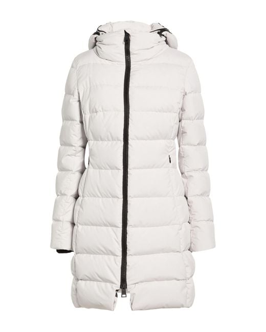 Down coat, shell, jersey, quilted, water-repellent fabric, brand logo, solid color, detachable hood, long sleeves, goose down interior, heavyweight padding, zipper fastening, zipped pockets, internal pockets, contains non-textile parts of animal origin, hand wash, do not bleach, do not tumble dry , Color: Light grey , Size: 14