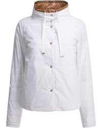 Go to FashdesReversible light blue and beige nylon padded jacket. Features a round neckline, front button closure, two side pockets, short cut.filling: 90% goose down, 10% goose feathers.regular fit.size nationality: itSpecificationValueSeasonSS26Composition100% POLYAMIDE; INT: 90% GOOSE