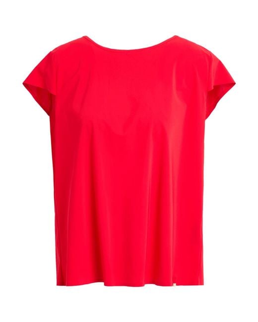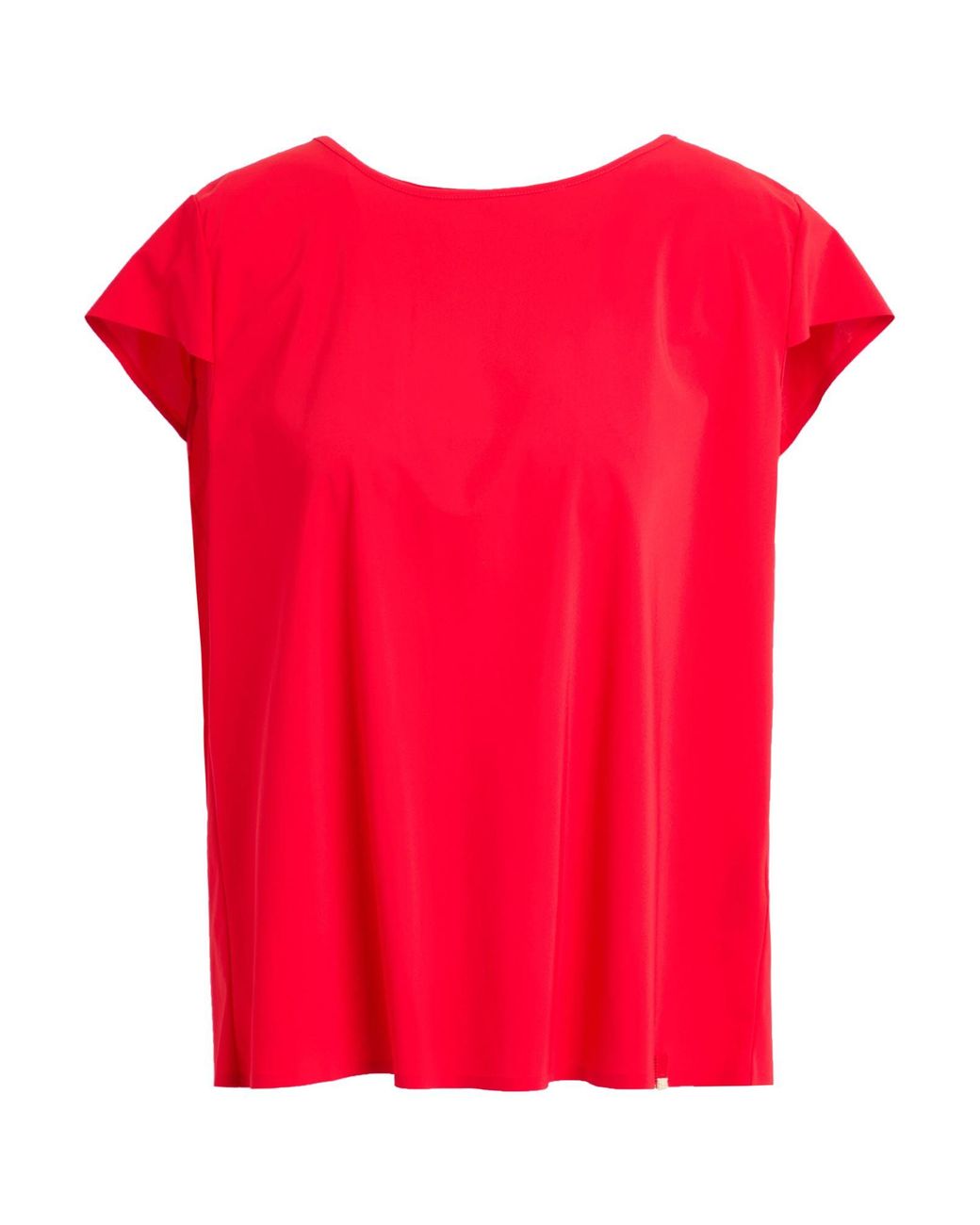 Top, synthetic jersey, stretchy fabric, solid color, brand logo, crewneck, short sleeves, cap sleeves, machine wash or dry clean, do not bleach, do not tumble dry , Color: Red , Size: 2