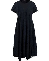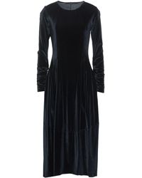 Go to YOOXCrepe, belt, plain color, v-neck, 3/4 length sleeves, stretch, flared dress. 95% polyester, 5% elastane. Color: blue