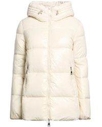Go to YOOXTechno fabric, brand logo, solid color, turtleneck, single-breasted , long sleeves, duck down filling, zipper closure, multipockets, pocket with zipper, contains non-textile parts of animal origin. 100% Nylon. Color: yellow