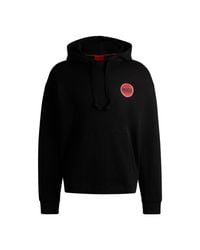 HUGO Men's Black Relaxed-fit Hoodie In French Terry With Dog Artwork