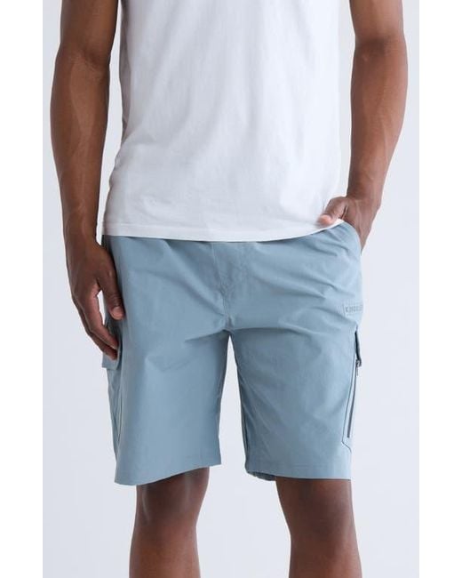 Adventure more in these durable water-repellent cargo shorts constructed with a comfortable elastic-drawcord waist and roomy pockets for your essentials. 9" inseam; 9" leg opening; 11 1/2" front rise Elastic waist with internal drawcord Front slant pockets; cargo flap-patch pockets; zip pocket Durable water-repellent (DWR) finish 100% polyester Machine wash, tumble dry Imported Color: blue