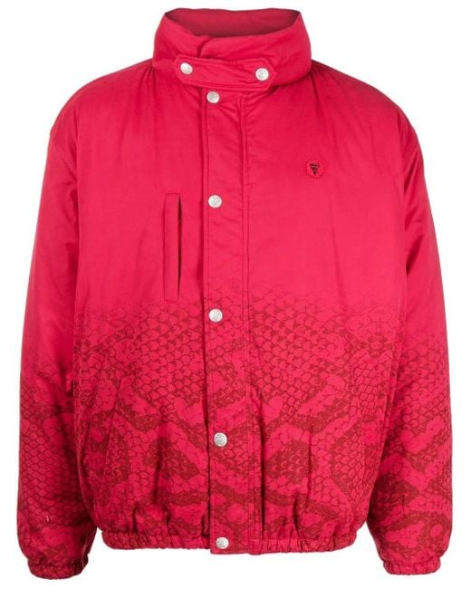 Men's Red Snakeskin-Print Padded Jacket
