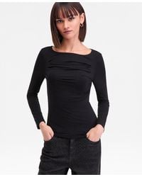 Go to Macy'sA modifed boat neckline and placed pleats add a unique touch to this long-sleeve top from I.n. C. International Concepts. About The Brand: I.n. C. Is inspired by fabulous women-always bold, confident, and stylish. 96% rayon, 4% spandex. Color: blue
