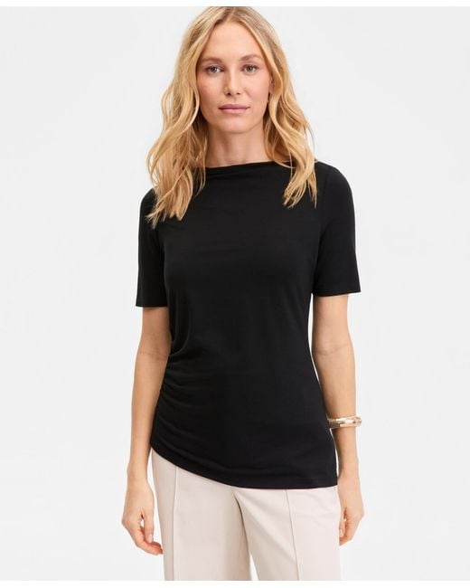 Women's Black Luxe-layering Jersey Boat-neck Short-sleeve Top