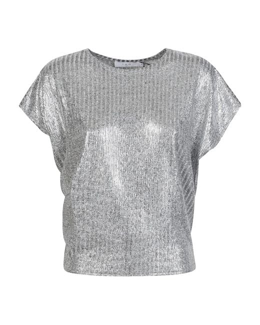 IRO Tarra Top is a blouse that combines classic shaping with a gray lurex finish. It offers a versatile piece for day-to-night styling. Key attributes: Gray | Gray Lurex | Lurex finish Color: gray