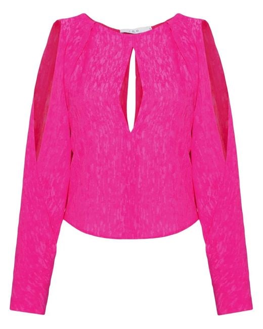 Fuchsia pink textured finish round neck keyhole neck cold-shoulder design long sleeves cropped Size: 40. Gender: Female. Material:Viscose. Color: pink