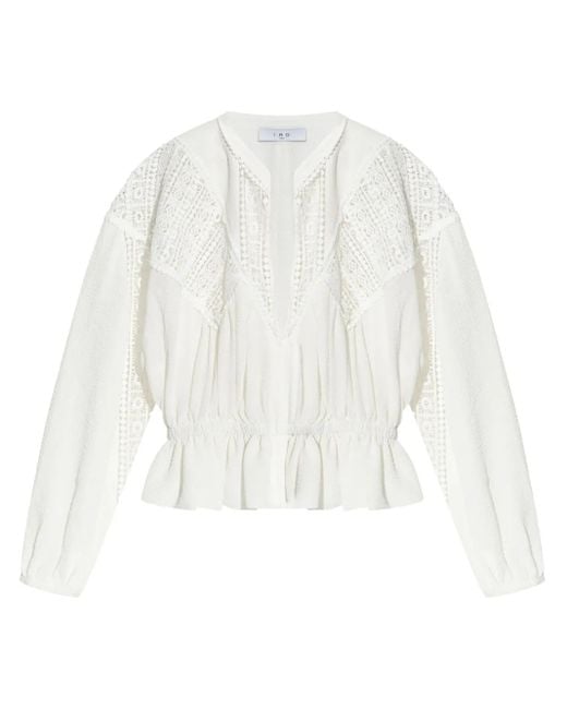 White embroidered design elasticated waist drop shoulder buttoned cuffs Size: 34. Gender: Female. Material:Polyester.