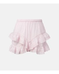 Go to Isabel MarantFrilly lace and cotton voile shorts Elastic waist Rows of frills Lace braid finishes Short and flared cut Style: SH0242FAC3J05E01BK GEANA Color: black; Size: 34, 36, 38, 40, 42, 44