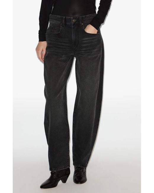A flattering silhouette that's suprisingly versatile.Discover the Oriane Wide Denim Pant by Isabel Marant, a chic addition to your streetwear closet. Expertly crafted from 100% cotton, these faded black jeans offer a regular fit and a stylish mid-rise waist. Designed with a fitted waistband and loops, they feature a practical zip closure with a metal button, alongside five classic pockets detailed with silver-finish metal accents and metal rivets. Care for these tapered leg jeans is straightfo Color: black