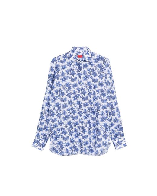 Men's Blue Floral-Pattern Long-Sleeve Shirt