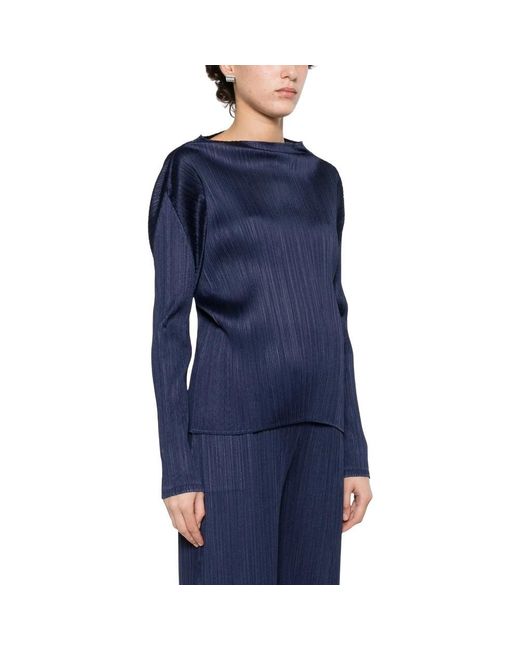 Issey Miyake's Monthly Colors : January top is a pleated, long-sleeve piece from the Pleats Please line, designed to add structured texture and vivid color to everyday outfits. Its high neck and fitted silhouette make it suitable for layered looks or standalone wear. Key attributes: Blue | Polyester | Machine-washable | High neck | Long sleeves | Pleated texture | Fitted silhouette | Flared hem | Dimensions & fit: Size 3 — Length 56.0 cm; Sleeve length 56.0 cm | Size 5 — Length 59.0 cm; Sleeve length 60.0 cm | Fitted silhouette | Composition & care: 100% Polyester | Machine wash cold, gentle cycle. Non-chlorine bleach only if necessary. Do not tumble dry. Line dry in the shade. Do not iron. Do not dry clean. Use a laundry net. Do not use fabric softener. Color: blue