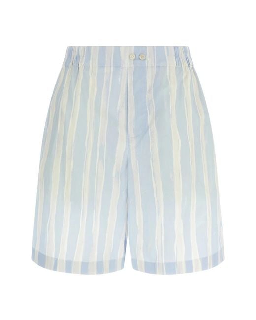 Jacquemus Le Short Caleçon is a boxer-style bermuda short in cotton poplin, highlighted by a watercolor striped pattern and practical buttoned detailing for everyday wear. Key attributes: Blue | Light blue | Cotton poplin | Elastic waistband | Buttoned flap | Pockets | Watercolor striped pattern | Boxer model | Bermuda silhouette | Dimensions & fit: True to size fit | Medium waist | Composition & care: 100% cotton Color: blue