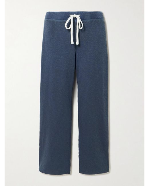 Women's Blue Cropped Brushed Cotton-Terry Track Pants