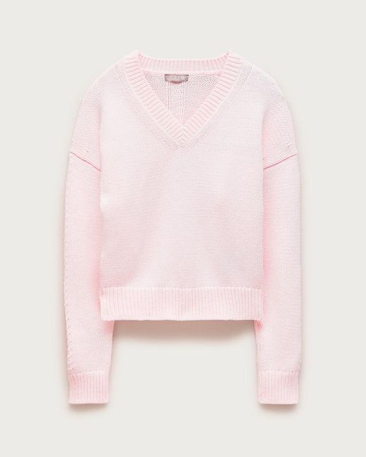 Women's Pink Cotton V-Neck Pullover Sweater