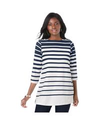 Jessica London Women's Black Stretch Cotton Boatneck Tunic