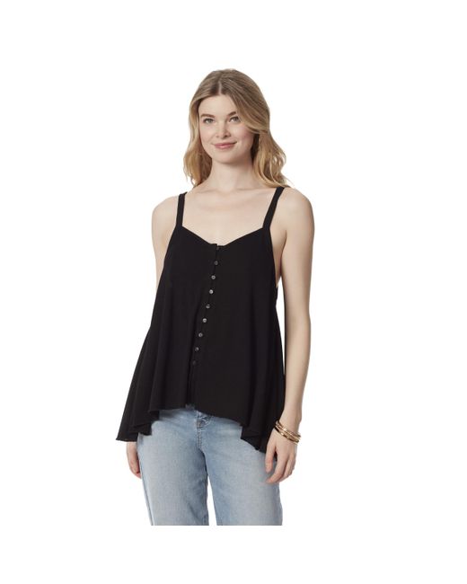 Women's Black Gwen Button Up Front Swing Hankercheif Hem Tank Top Standard