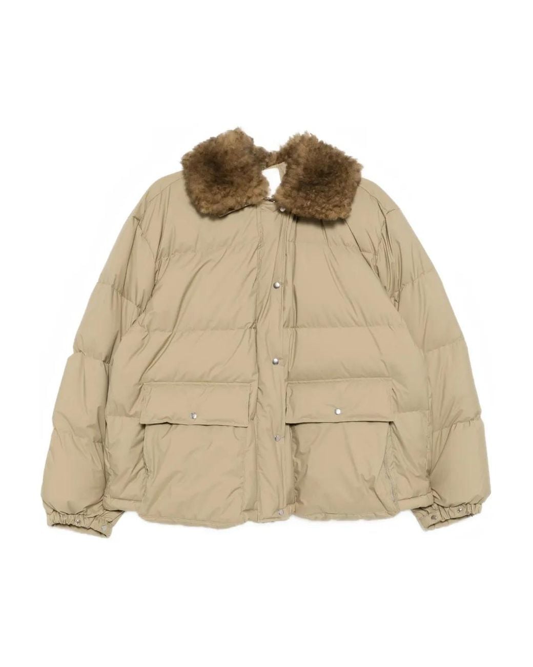 Khaki green front button and zip fastening detachable collar button-elasticated cuff sleeves Size: XS. Gender: Female. Material:Duck Down/Polyester/Polyamide.