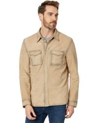 Go to John VarvatosThe Lionel Leather Shirt Jacket is constructed from a supple sheep leather that has been drum dyed with no pigmentation on top. The naked aniline leather has a slight sheen finish, with certain