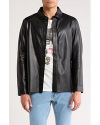 John Varvatos Men's Black Lionel Leather Shirt Jacket