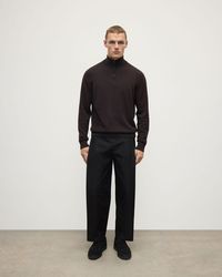 Go to Johnstons of ElginEarthy olive cashmere makes this an instant favourite with enduring appeal. Jersey-weight 2-ply cashmere is soft yet robust. This customer favourite half zip design features a pop of contrasting gray detail inside the neck. Color: green