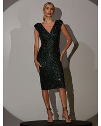 Jolie Moi Women's Green Wrap Bodice Sequin Midi Dress