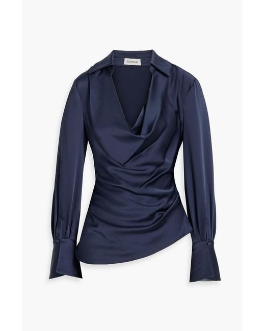 Women's Blue Symone Draped Satin-Crepe Blouse