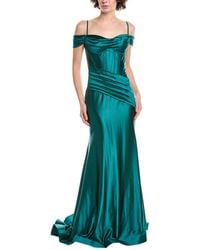 Go to Rue La LaColor/pattern: off white Approximately 64in from shoulder to hem Model is 5'10 and is wearing a size 4. Measurements may vary slightly by size. Design details: draped pleating and crystal detailing at bodice
