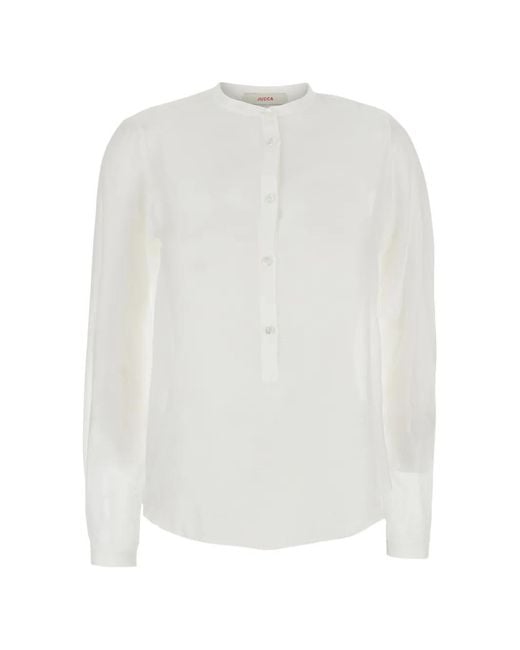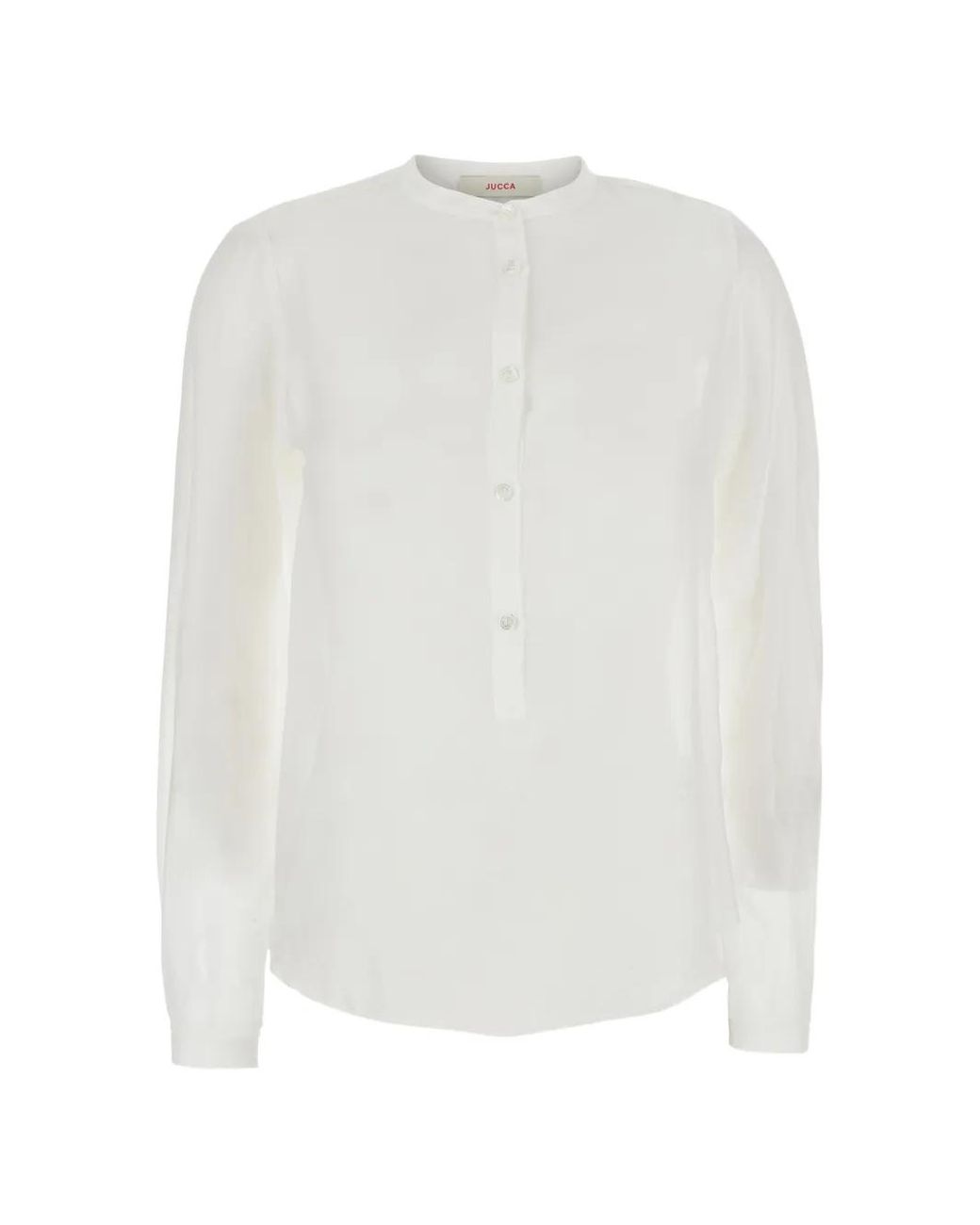 White button fastening long sleeves round neck Size: 40. Gender: Female. Material:Fabric. Color: white