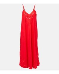Juliet Dunn Women's Blue Embroidered Cotton Chambray Midi Dress